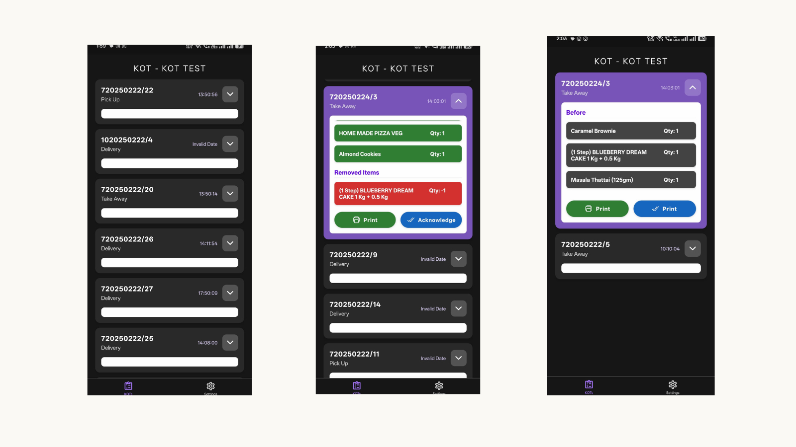 BIZBOOK KOT is a plugin-based Android app designed to enhance our existing POS system, BIZ1BOOK. It replaces traditional direct printing of KOTs in the kitchen, allowing chefs and staff to receive orders digitally with real-time alerts. With multi-kitchen support, KOT history tracking, and priority-based order management, kitchen teams can efficiently handle orders, ensuring faster service and better coordination.