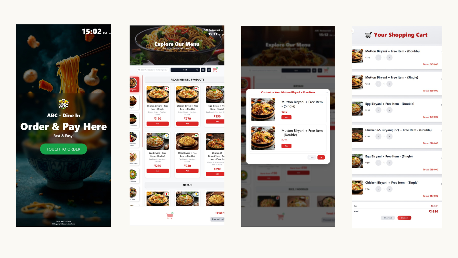 The Self-Order System provides a user-friendly and intuitive interface that allows customers to browse menus, customize their orders, and complete payments seamlessly. Designed to deliver a smooth and efficient self-service experience, it reduces wait times, enhances customer convenience, and ensures faster order processing.